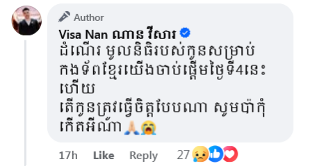 ក្នុងនោះដែរ ក្រោយលោក ណាន វីសារ បានបង្ហាញពីសុខទុក្ខរបស់លោកឪពុកជាកងកម្លាំងជួរមុខ ដែលជួបគ្រោះថ្នាក់ចរាចរណ៍អំឡុងបំពេញភារកិច្ចនោះ មហាជនបានបង្ហាញក្តីបារម្ភ និង ជូនពរឱ្យលោកឪពុកតារាចម្រៀងប្រុសខាងលើបានធូរស្បើយ។ លើសពីនោះ មហាជនជាច្រើនបានកោតសរសើរនូវទឹកចិត្តស្រឡាញ់ជាតិរបស់លោកឪពុក ណាន វីសារ ដែលទើបតែធូរស្បើយពីការបំពុលផ្សែងពុលពីទាហានថៃមិនប៉ុន្មាន ស្រាប់តែវិលទៅកាន់ជួរមុខបំពេញតួនាទីវិញភ្លាមៗ ដើម្បីប្រទេសជាតិ៕