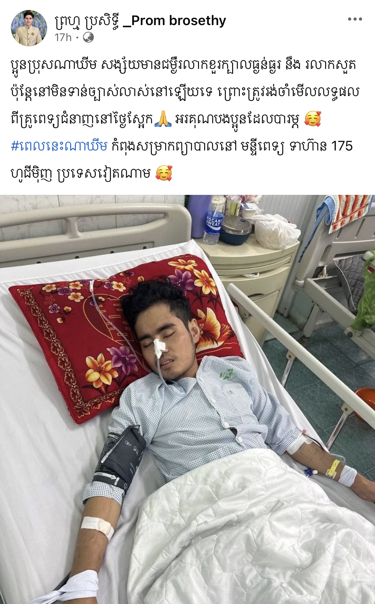 ក្នុងនោះ លោក ព្រហ្ម ប្រសិទ្ធី បានបន្ថែមថា៖ «អាការ ណាឃីម ព្រឹកនេះ រាងអន់រវើរវាយបន្តិចហើយ! គ្រូពេទ្យប្រាប់ថា យ៉ាងយូរ ៣ ថ្ងៃទៀត អាចស្ដាប់ឮ មើលឃើញ ស្ងប់អារម្មណ៍ជាងហ្នឹងបន្តិចហើយ»៕