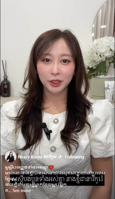 និយាយពីអ្នកបង្កើតមាតិកាហ្វេសប៊ុកជនជាតិកូរ៉េដ៏ល្បីឈ្មោះ នារីកូរ៉េ តែងឆក់ការចាប់អារម្មណ៍កាន់តែខ្លាំងពីមហាជនអ្នកគាំទ្រខ្មែរលើបណ្ដាញសង្គមជាមួយនឹងការបង្ហោះផ្សេងៗលើហ្វេសប៊ុកផេករបស់នាង ទាក់ទងនឹងទឹកដីកម្ពុជាបង្ហាញពីទំហំចិត្ត និង ក្ដីស្រឡាញ់ចំពោះភាសា វប្បធម៌ ប្រវត្តិសាស្រ្តរបស់កម្ពុជាគួរឱ្យសរសើរ។