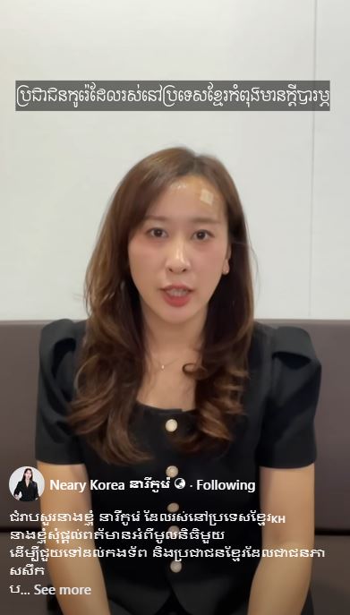 ក្នុងនោះ នារីកូរ៉េ ក៏បានសរសេរសារភ្ជាប់ជាមួយវីដេអូទៀតថា ៖ «សួស្ដីបងប្អូនទាំងអស់គ្នា ពេលនេះនាងខ្ញុំបានរស់នៅយ៉ាងសុខសប្បាយនៅប្រទេសខ្មែរ នាងខ្ញុំជាមនុស្សម្នាក់ដែលស្អប់អ្នកដែលបានធ្វើទង្វើអាក្រក់មកលើទឹកដីខ្មែរ ខ្ញុំសង្ឃឹមថានឹងមានព័ត៌មានល្អៗច្រើនជាងនេះទៀតអំពីប្រទេសខ្មែរ»៕