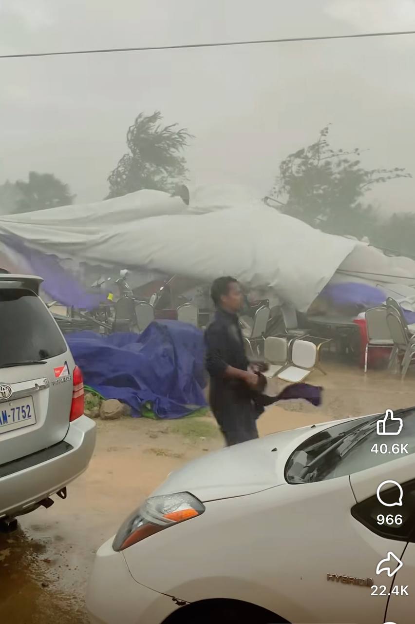 ពិតជាស្តែងៗ ខ្យល់ភ្លៀងមួយមេបានធ្វើឱ្យរោងការ ដែលមិនទាន់បានចាប់ផ្តើមពិធីស្រួលបួលផង ត្រូវបោកបក់ដួលរលំខ្ទេច ខណៈមនុស្សក្នុងរោង ភ័យរត់ចែកជើងគ្នាសឹងមិនទាន់។ ហេតុការណ៍នេះ បានកើតឡើងកាលពីថ្ងៃទី ១៦ ខែមីនា ឆ្នាំ ២០២៥ នៅឯខេត្តប៉ៃលិន។