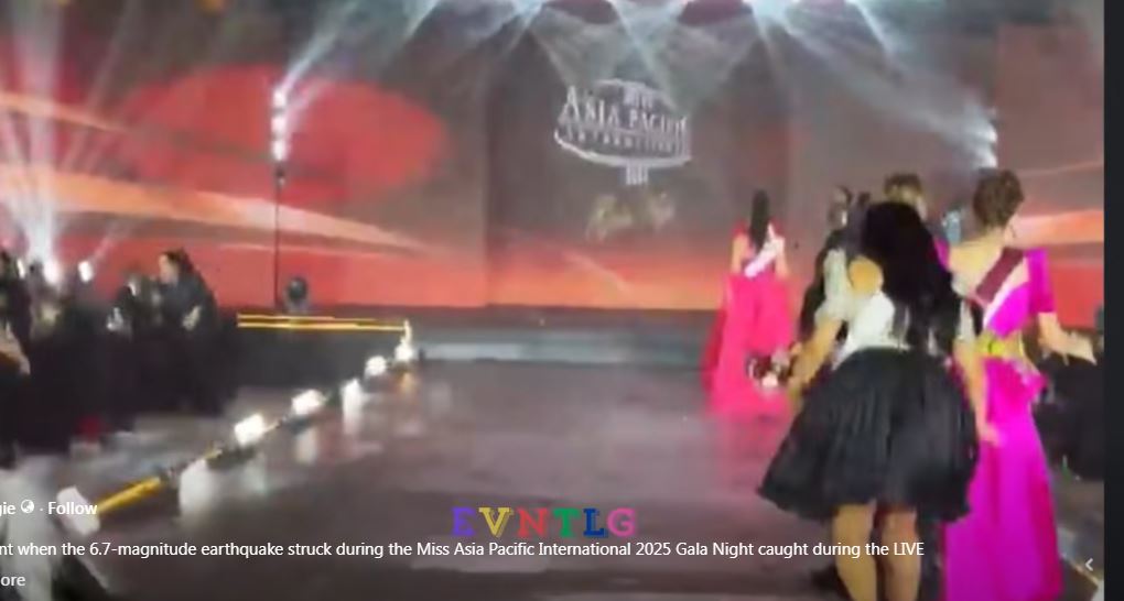 មុនកើតហេតុការណ៍រញ្ជួយដីនេះ បវរកញ្ញា Miss Asia Pacific តំណាងប្រទេសនីមួយៗជាច្រើន កំពុងបង្ហាញខ្លួនដើរលើឆាក Miss Asia Pacific International 2025 ស្រាប់តែមានការរង្គើញ័រឆាកភ្លាមៗ ធ្វើឱ្យបវរកញ្ញាទាំងអស់បានរត់ចុះពីលើឆាក និង ទៅក្រាបក្រោមតុដើម្បីសុវត្ថិភាព។