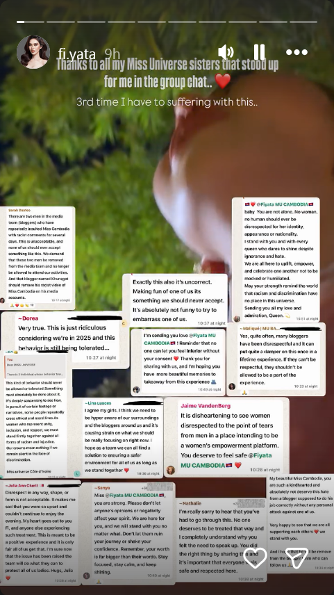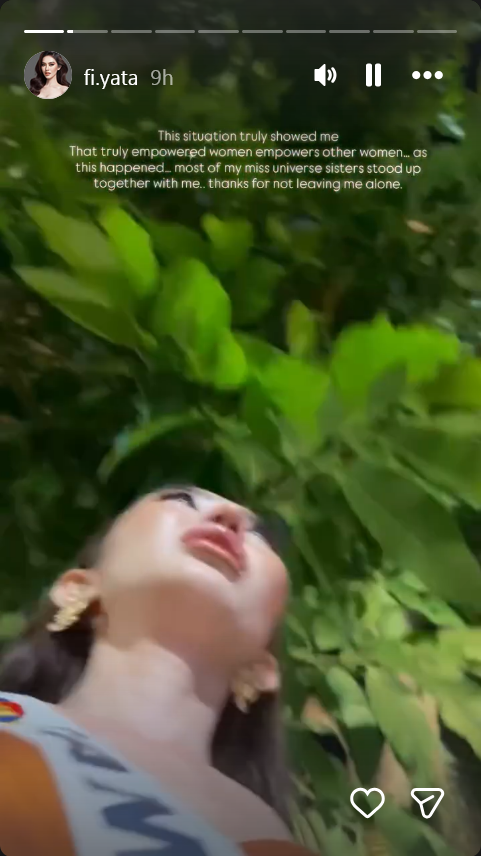 បើតាមរយៈការបង្ហោះវីដេអូ នៅលើ Story ក្នុងគណនី IG របស់បវរកញ្ញា ហ្វីយ៉ាតា បានសន្ទនាជាភាសាអង់គ្លេសជាមួយនឹងបវរកញ្ញាដទៃទៀតទាំងទឹកភ្នែក ដោយ ហ្វីយ៉ាតា បានឱ្យដឹងថា មានជនជាតិថៃម្នាក់បាននិយាយភាសាថៃ សើចឡកឡាយដាក់នាង ដោយគិតថានាងមិនចេះស្តាប់។ ក្នុងនោះ ហ្វីយ៉ាតា បានបន្តថា នាងស្តាប់ហើយ ក៏ដើរចេញតែម្តងទៅ។