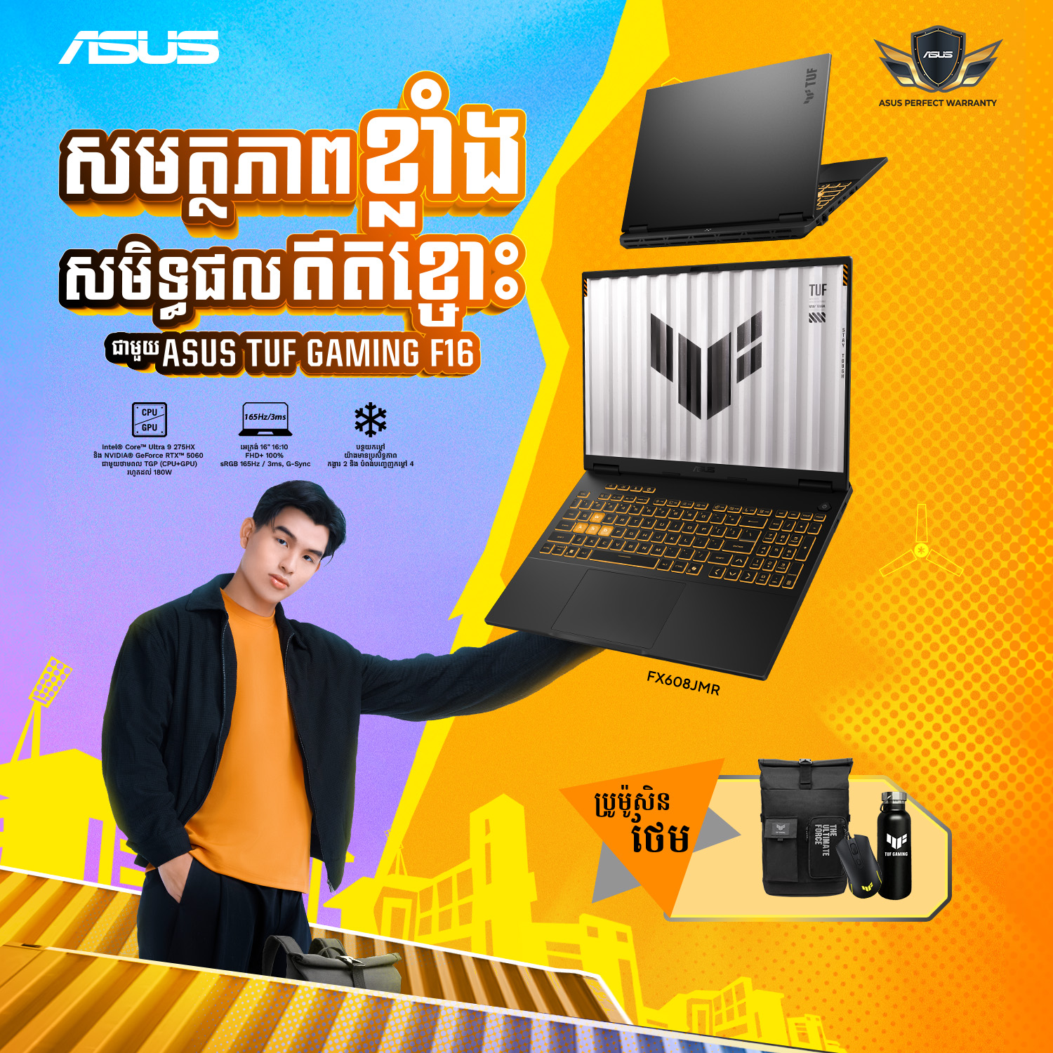• ASUS TUF Gaming F16 (FX608JMR): កម្លាំង និងដំណើរការសម្រាប់អ្នកលេងហ្គេម និងសិស្សានុសិស្ស ASUS TUF Gaming F16 (FX608JMR) គឺជាកុំព្យូទ័រដ៏ខ្លាំងដែលអាចដោះស្រាយទាំងការសិក្សាដែលទាមទារ និងហ្គេមចុងក្រោយបំផុត។ កុំព្យូទ័រយួរដៃនេះមាន processor ដ៏មានឥទ្ធិពល និងកាតក្រាហ្វិកដែលខិតខំប្រឹងប្រែង ផ្តល់នូវបទពិសោធន៍លេងហ្គេមយ៉ាងរលូន និងស៊ីជម្រៅ។ ក្នុងនាមជា AI PC នោះ TUF Gaming F16 (FX608JMR) ប្រើប្រាស់ AI សម្រាប់មុខងារដូចជា Dynamic Boost និង DLSS ដែលបង្កើនទាំងការលេងហ្គេម និងដំណើរការច្នៃប្រឌិត។