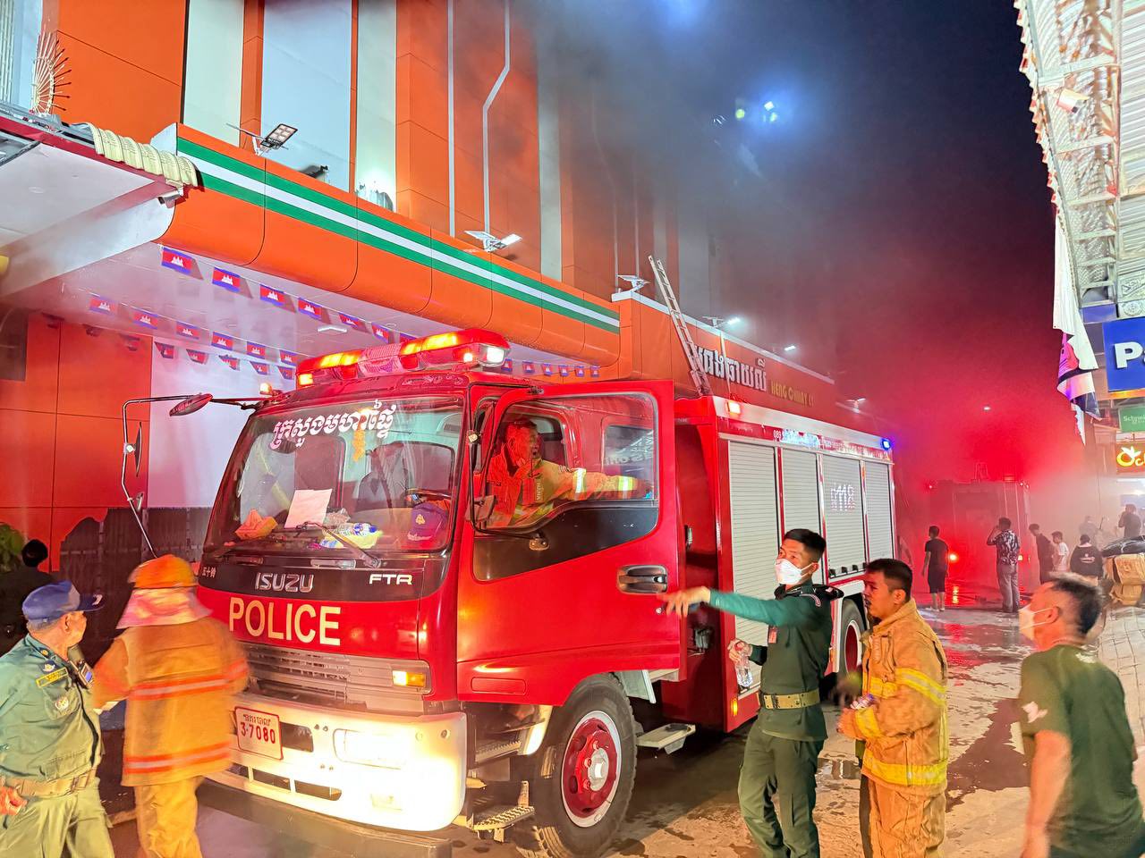 សោកស្ដាយ! បាត់ដំបងយប់មិញ ឆេះផ្សារទំនើបហេងឆាយលីចំនួន ​២៣ ​ល្វែង ប្រើទឹក​បាញ់ពន្លត់អស់ ៦៨ ​ឡាន សមត្ថកិច្ចកំពុងស្រាវជ្រាវមូលហេតុ