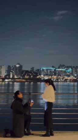 តាមរយៈវីដេអូនោះដែរ ឃើញថាដំបូងៗឡើយលោក និង មិត្តស្រី ឈរនិយាយគ្នាធម្មតានៅតាមដងទន្លេ Han នៃប្រទេសកូរ៉េខាងត្បូង ប៉ុន្តែមួយសន្ទុះក្រោយមក លោកបានធ្វើឱ្យមិត្តស្រីភ្ញាក់ព្រើតរំភើបរហូតហូរទឹកភ្នែកដោយលោកបានលូកទាញយកប្រអប់ចិញ្ចៀនពីហោប៉ៅបើកបង្ហាញចិញ្ចៀនពេជ្រមួយវង់យ៉ាងធំប៉ុនគ្រាប់ល្មុតលុតជង្គង់សុំមិត្តស្រីដ៏ស្រស់សោភារៀបការយ៉ាងផ្អែមល្ហែមជាទីបំផុត។