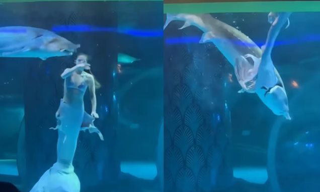 មានហេតុការណ៍មួយនៅប្រទេសចិន ដែលកំពុងតែត្រូវបានគេចែកចាយពេញបណ្តាញសង្គម គឺមាននារីម្នាក់សម្តែងធ្វើជានាងមច្ឆានៅក្នុងទឹកឱ្យភ្ញៀវមើល ស្រាប់តែត្រូវត្រីធំខាំក្បលនៅមុខភ្ញៀវតែម្តង។