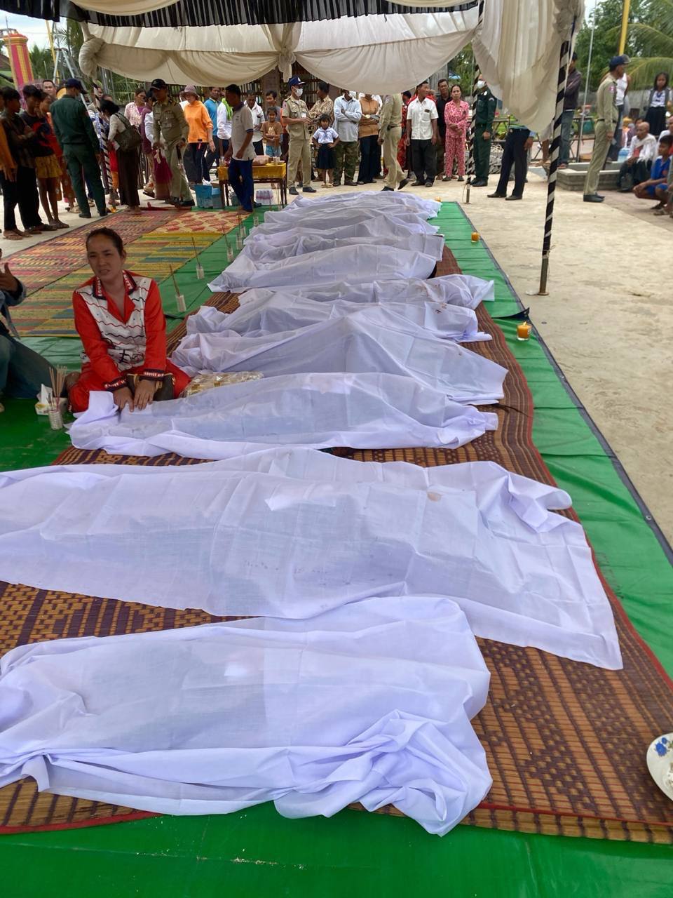 ស្រណោះណាស់! ទិដ្ឋភាពស/ពជនរងគ្រោះ ១៣ នាក់ ក្នុងហេតុការណ៍គ្រោះថ្នាក់ឡានក្រុងនៅកំពង់ធំ ដាក់តម្កល់តម្រៀបគ្នាកំពុងរង់ចាំសាច់ញាតិ