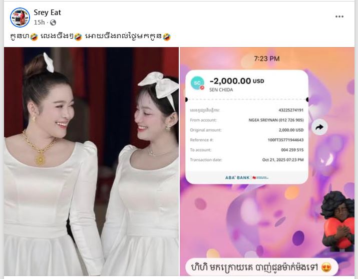 មហាជនសុទ្ធសឹងតែបានជ្រាបពីជីវិតឯកជនរបស់តារាកំប្លែងស្រីល្បីឈ្មោះ ស្រីអ៊ីត ក្រោយពីរស់ក្នុងជីវិតជាស្រ្តីមេម៉ាយដ៏រឹងមាំចិញ្ចឹមមើលថែកូនស្រីតែម្នាក់ឯង និង ឆ្លងការលំបាកជាច្រើនឆ្នាំ មកដល់បច្ចុប្បន្ន ខណៈកូនស្រីធំពេញវ័យ ពេលនេះម្ដាយកូនទាំងពីរ បានចាប់ដៃគ្នាធ្វើការងារសិល្បៈចេញពីកម្លាំងញើសឈាម និង កំពុងរស់នៅយ៉ាងក្ដីសុខសុភមង្គល មានជីវិតធូរធារ។