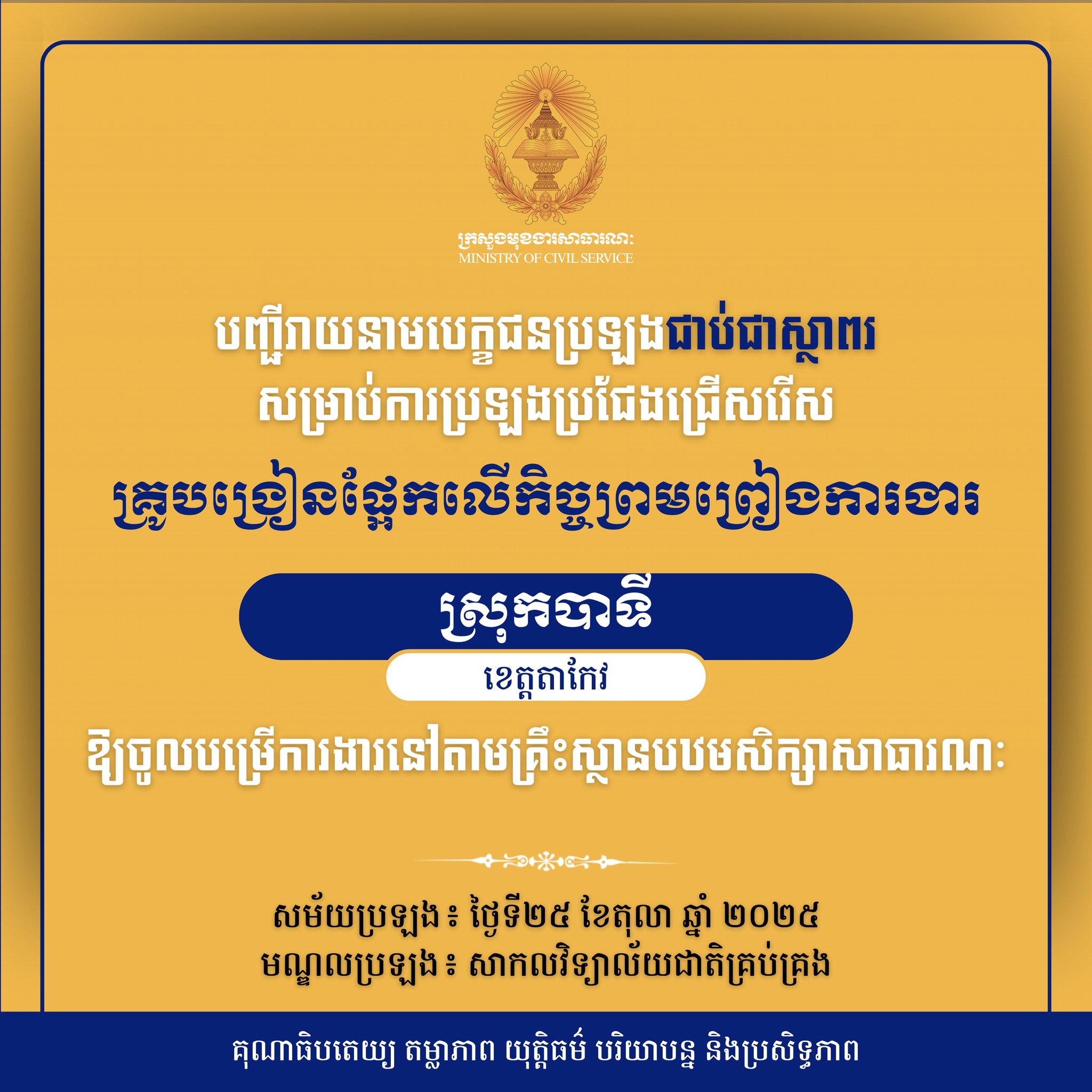 គួរជម្រាបថា កញ្ញា សាន្ត កុសុមៈ បានជាប់ជាស្ថាពរនៃការប្រឡងប្រជែងជ្រើសរើសគ្រូបង្រៀនផ្អែកលើកិច្ចព្រមព្រៀងការងារ នៃគ្រិះស្ថានបឋមសិក្សាសាធារណៈនាឃុំលំពង់ ស្រុកបាទី ខេត្តតាកែវ៕