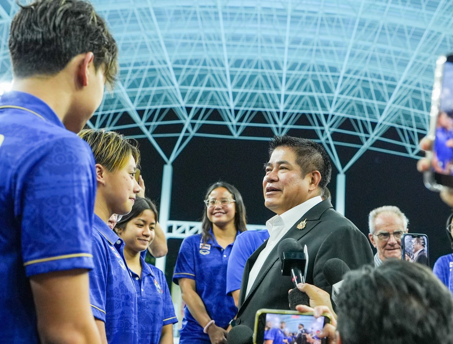 កាលពីថ្ងៃទី ៤ ខែធ្នូ ឆ្នាំ ២០២៥ កន្លងទៅនេះ ឧបនាយរដ្ឋមន្រ្តីថៃ Thammanat Prompao បានផ្ដល់បទសម្ភាសទាក់ទងនឹងការធ្វើម្ចាស់ផ្ទះកីឡាស៊ីហ្គេមរបស់ថៃ ខណៈទៅសំណេះសំណាលលើកទឹកចិត្តឱ្យក្រុមកីឡាហែលទឹកជម្រើសជាតិថៃ។