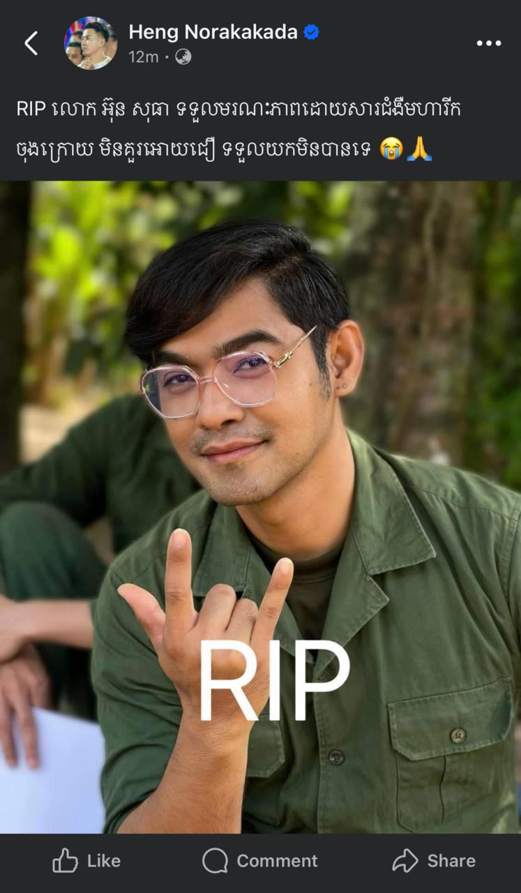 ក្នុងនោះ មានអ្នកសិល្បៈជាច្រើនរូបបាននាំគ្នាបង្ហាញពីការសោកស្តាយក្រៀមក្រំយ៉ាងខ្លាំងនៅតាមបណ្តាញសង្គម ដោយមិននឹកស្មានថាតារាប្រុសរូបនេះចាកចេញទៅលឿនយ៉ាងនេះសោះ។