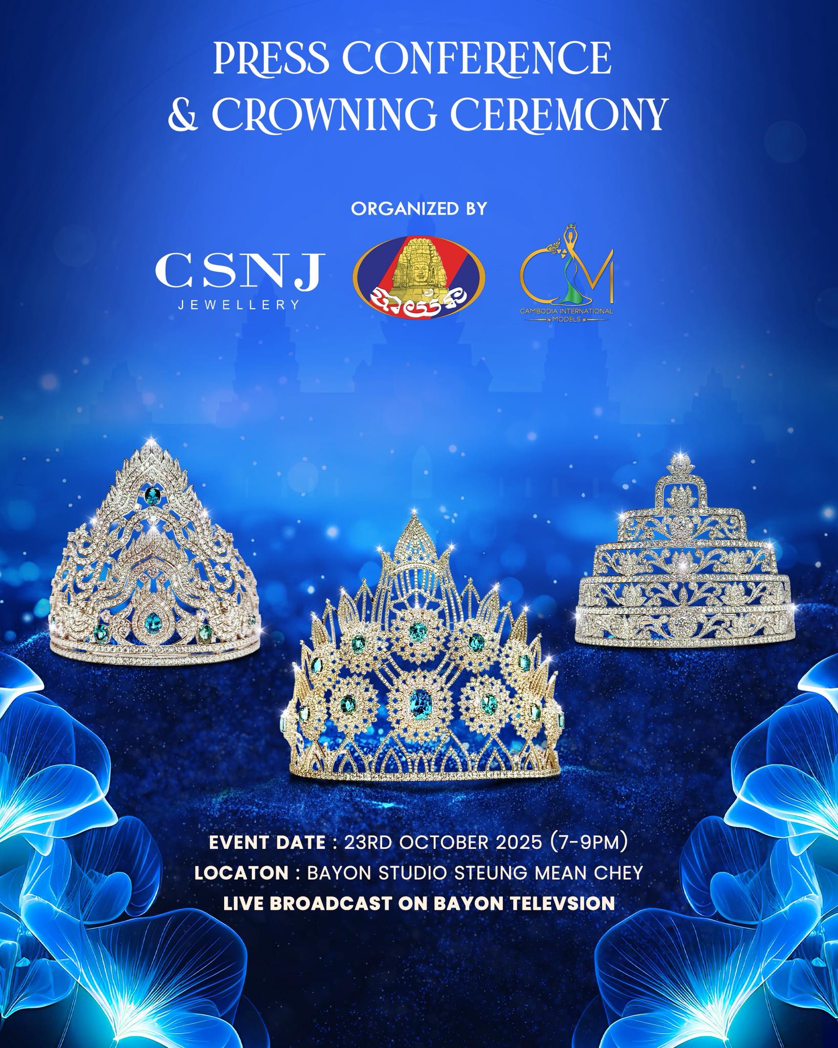 ក្នុងនោះ កំពូលរាជិនីសម្រស់ ៣ រូប នៃតំណែងចំនួនរួមមាន Miss World Cambodia 2026, Miss International Cambodia 2025 និង Miss CosmoWorld Cambodia 2025 នឹងត្រូវបើកបង្ហាញក្នុងពិធីសន្និសីទសារព័ត៌មាន ជាមួយការបំពាក់ឈៀង និង គ្រងមកុដ នាថ្ងៃទី ២៣ ខែតុលា ឆ្នាំ២០២៥។
