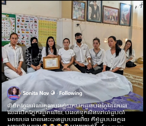 នៅក្នុងវីដេអូ លោកជំទាវ ក៏បានបង្ហាញរូបភាពយកលិខិតនេះទៅដល់កន្លែងពិធីបុណ្យសពផងដែរ។ ភ្ជាប់គ្នានេះ លោកជំទាវបានសរសេររៀបរាប់យ៉ាងស្រងោចចិត្តថា៖ «លិខិតថ្លែងអំណរគុណបង ខ្ញុំយកមកជូនបង ថ្ងៃដែលបងលែងបើកភ្នែករហូតហើយ។ បងថាទុកសិនទៅចាំជួបចាំឱ្យបង ពេលនេះបានជួបបងហើយ គឺខ្ញុំជួបបងក្នុងសភាពបែបនេះ។