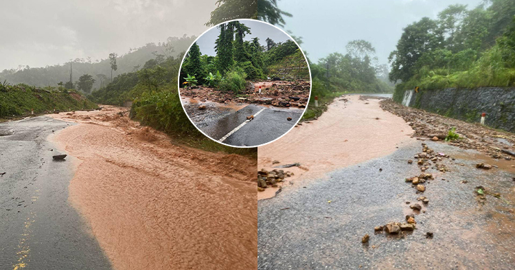 នៅពោធិ៍សាត់! ភ្លៀងធ្លាក់ខ្លាំងច្រើនថ្ងៃជាប់គ្នា បណ្ដាលឱ្យផ្លូវជាតិលេខ ៥៥ ភ្នំ១៥០០ តំបន់អន្ទង់អាំង បាក់ច្រោះដីធ្លាក់លើតួផ្លូវ ខូចខាតច្រើនកន្លែង