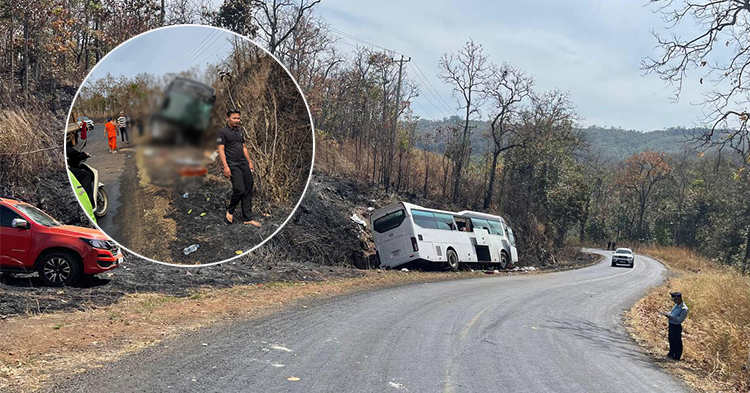 ព្រះអើ.យ! និស្សិតចុះកម្មសិក្សា ៤៦ នាក់ជិះក្នុងឡានក្រុងមួយ តៃកុងមិនប្រយ័ត្នជ្រុលបង្កូតបុ.កជញ្ជាំងភ្នំនៅមណ្ឌលគិរី អាជ្ញាធរកំពុងខ្នះខ្នែងជួយ