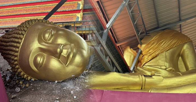 នៅថៃ! ព្យុះភ្លៀងខ្លាំង បក់បោកបាក់ព្រះកេសពុទ្ធបដិមាដ៏ធំមួយអង្គធ្លាក់ដល់ដី លុះប្រើឡានស្ទូចលើកឡើងវិញ ក៏ជួបរឿងមិននឹកស្មានមួយជាន់ទៀត