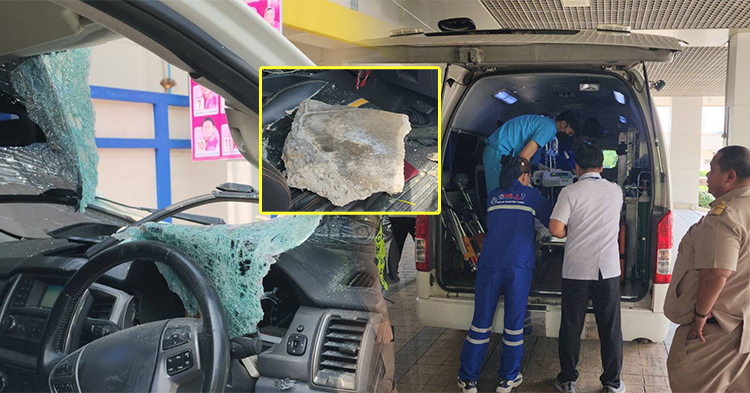 ជីវិតផុយស្រួយ! នៅថៃ បុរសម្នាក់បើកឡានសុខៗ ត្រូវដុំស៊ីម៉ងត៍ប៉ុនណាណីធ្លាក់ចេញពីលើស្ពានឆ្លុះកញ្ចក់ឡាន បណ្តាលឱ្យបែ.កថ្លើមស្លា./ ប់