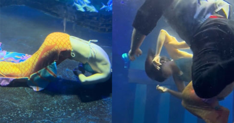 (វីដេអូ) ព្រោះជីវភាព អ្នកសម្ដែងម្នាក់បានខ្យល់-គដាំក្បាលចុះទៅបាតអាងទឹកប៊ិះស្ល-ា/ប់ ពេលកំពុងសម្តែងធ្វើនាងមច្ឆាឱ្យភ្ញៀវទស្សនា