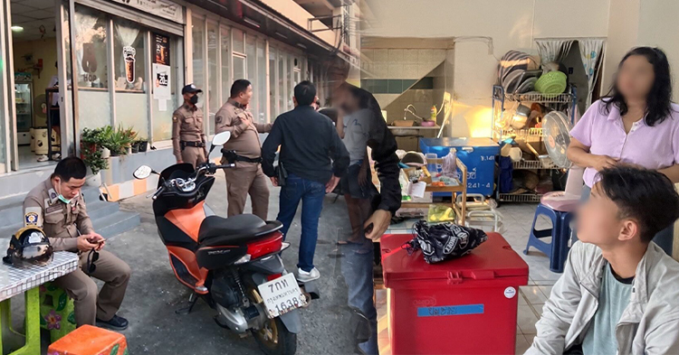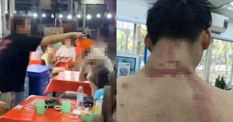(វីដេអូ) នៅថៃ! បុរសសង្ហាម្នាក់កំពុងអង្គុយញ៉ាំគុយទាវសុខៗ ត្រូវភេទទី ៣ នាំគ្នីគ្នាមករករឿង ហើយជះទឹកស៊ុបក្ដៅលើខ្លួនគួរឱ្យអាសូរ