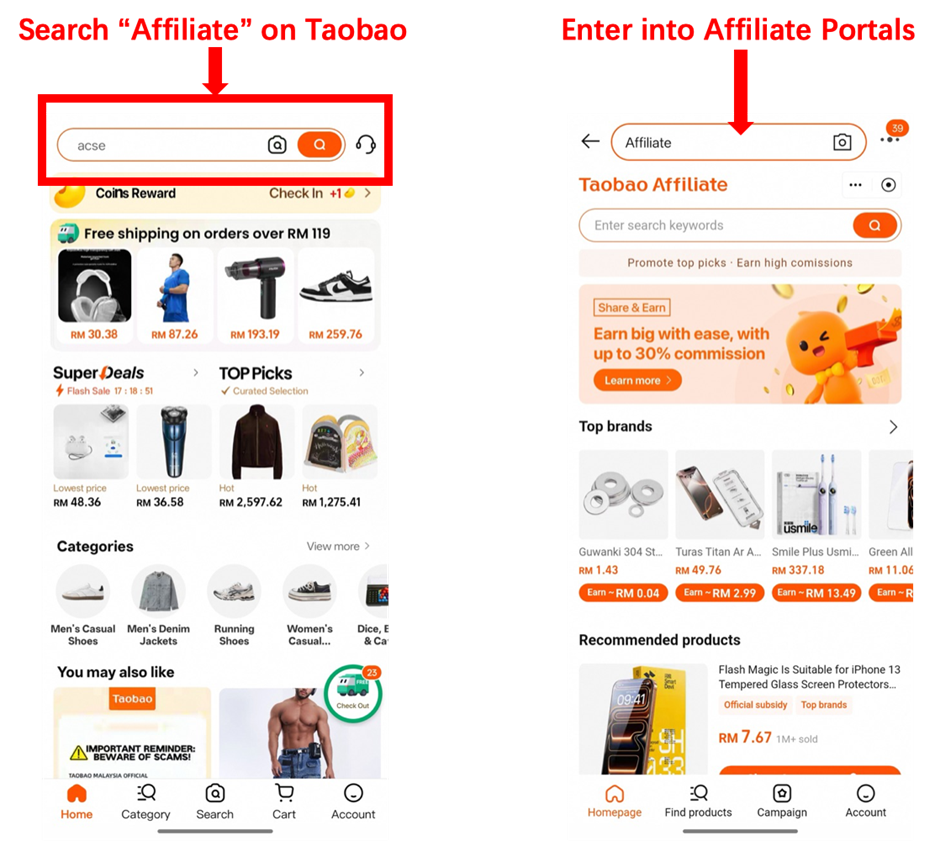 • កម្មវិធី “Share & Earn” ដែលអាចឲ្យអ្នកចែករំលែកទំនិញ ហើយអាចទទួលបានកម្រៃជើងសាររហូតដល់ 20% ព្រមទាំងទទួលប្រាក់ ¥0.1 សម្រាប់អ្នកចុះឈ្មោះថ្មី និងទទួលបាន ¥25 / USD 3.5 សម្រាប់ការទិញទំនិញ ដោយគ្រាន់តែវាយពាក្យ [AFFILIATE] នៅក្នុងកន្លែងស្វែងរក ដើម្បីចាប់ផ្ដើមកម្មវិធី Share & Earn។